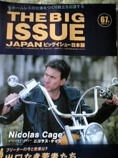 しばらく書いてなかったよ。その後は3連敗です。試験勉強をしなくてはいけないから今週は仕事帰りにパチンコ行かないと心に決めていたのだが、そんな決心はもろくも崩れ去り…月曜 -¥17,000火曜日-¥12,100水曜日-¥12,700結局先日から4連敗で2月終わり。2月のトータル¥51,000MAX10万こえていたのにね~1月が¥62100の負けだから結局¥11100の負け。でも昨日受験したMCP70-271の試験は合格!!!130分の試験時間だったのだが、久々に頭を使ってすごーーーく疲れた。これでMCP4個目だよ!!!あと一枚去年購入していたバウチャーチケットが5/17までの使用期限なのでそれまでにもうひとつ受けるつもり。そうしたらMCSAになれるのだ。明日早速テキストを購入するつもり。今年はどーもパチンコの調子が悪い分資格取得をがんばるぞ~!!!話は変わるけど以前書いたことがあったけどホームレスの人を支援する為の雑誌BIG ISSUE(ビッグイシュー)一ヶ月に2回刊行してて販売員の人はホームレスの人だ。私は職場の近く購入していますが、この雑誌本当に中身がおもしろのだ。¥200なのだが、このうち¥110が販売員の人の収入になるわけ。イギリスが発祥の雑誌です。東京では結構有名らしい。大阪でも結構ひろがってきているとのこと。ホームレスのおじさんに少しの支援ができるし、雑誌もおもしろいのでぜひオススメです。ちなみに上の写真は3/1号です。ニコラス・ケイジのインタビューなどがのっています。