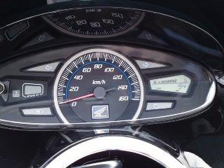 話題のホンダPCXに試乗してきました~14inchタイヤで直進性良し、どっしりと安定感がありました。ウリの一つがアイドリングストップ。エンジンが暖まってきたら作動するらしいです。最初は3車線道路の交差点右折で起動。パタッとエンジンが停止しました。後ろに車が数台つながったので、エンジンが再始動しなかったらどうしよう、とドキドキしました。アイドルストップ中はメーター周りにあるアイドルストップ表示ランプが点滅。消えたらどうしよう、とず~っと見つめておりました。 ※速度表示の左側の白線で囲まれているランプがアイドルストップ表示 橙色のランプが点滅します。シャッタータイミングが難しくて何回撮っても点灯時を撮れなかった… 信号が右折矢印に変わってスロットルを少しひねったら無事に(笑)始動しましたが、セルがACGセルモーターという静かなメカなので、普通のバイクのようにキュルキュル音でエンジンがかかるのではなく、いきなりエンジン音です。ほんとに何事もなかったかのように始動です。派手にスロットルを回すと前に飛び出すくらいのタイムラグの無さです。よくできてるわ~ 125ccではなく120ccのエンジンはトルク、出力ともに控えめな印象。アドレスのようにかっとぶ感じはなく、何事もスムーズに。上品に立ち上がり、上品に加速する、そんな高貴なご婦人の振る舞いの感じ。(表現が古いか…)(帰りに自分のアドレスに乗ったら、これは庶民の振る舞いやな~と(笑)) わずか3kmの試乗でしたが、そのまま乗って帰りたくなるような仕上がりの良いバイクでした。お店に戻って店員さんとしばし会話。評判通り、試乗に訪れる人は多く、売れ行きも想定以上だったそうで、3月中旬売り出しであと1台になったそう。次の入荷は7月だって。この不景気に景気のいい話でヨカッタヨカッタ。見積作ってくれましたが、諸経費込みで29万くらい。コストパフォーマンスは極めてよろしいです。そうはいいながらも、1stロットなのでまだまだ見極めが必要です。7月の次は9月だそうでそのくらいの入荷分が狙い目かも。SUZUKIもYAMAHAもがんばれよな~