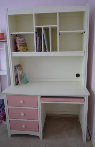 サリ用の学習机を、とうとう買わされました・・・・・・日本なら、小学1年生のときに買ったりするものなのかしら?サリは3年生ですが、今まではダイニングテーブルで宿題をしていました。でも、1年以上前から「自分の机が欲しい。お願い、買って。」と言っていました。ダイニングテーブルでいいじゃん!私がごはんを作りながら勉強を見てやれるし・・・・・と思っていましたが、スズと一緒に勉強していると、「うるさい!静かにして!」とお互いに言ったり、サリが、スズのやっていることが気になって自分の勉強に全然集中できなかったり、また、4年生くらいになると、課題が多くなって、机・パソコンなどが必要になってくると言う話も聞いて、4年生になったときに、机とパソコンを同時に購入、というのは我が家には無理な話なので、このバーゲンの時期に、まず机を購入することにしました。でも、日本のような機能的な子ども用の学習机ってあまり売っていないんですよ。オフィス・ワークスにあったのは、事務机みたいな感じ。これを長く使えるか?と思うとちょっと??????という感じ。アデレードで一番大きいだろうと思われる家具屋ラ・コンニュは、どっしりがっしりした書斎に置くような机しかなく・・・・・フリーダムにあったよと聞いたので行ってみたら、たしかにあったけれど、あまりにもシンプル(棚も引き出しもない)なのにかなり値段が高くて・・・・・・私のクラフト机を買ったクラシック・ティンバー・ファニチャーに行くと、これなら良いんじゃない?本棚も付いているしという机をようやく見つけることができました。げ、ピンクに白?と思ったのですが、子ども部屋がちょうどその色なので、まあ、良いかと言うことになり、購入決定!デリバリーを頼むと40ドルかかるので、夫が、車で2往復。机の部分と、本棚の部分を分けて運んでくれました。今まで本棚があったところに机を置くため、現在、部屋の中はすごいことになっています。ほら。さて、今日中に片付くでしょうか・・・・・・いつも応援ありがとうございます。ポチッとクリック、励みになります。