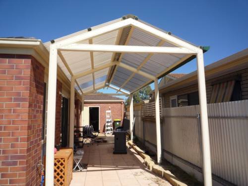 パゴラの骨組みができたことは以前記事にしました。そのときの記事はこちらから。夕方、蚊の攻撃と戦いながら、夫は、1枚1枚、パネルを上に上げ、ボルトで固定していきました。横には雨どいもつけました。雨どいから排水溝へのパイプもつけました。そして、とうとう屋根が付きました。やった~!屋根の色はわざと変えてあります。日差しが強い西側は濃い目の色。それを全部に張ってしまうと、部屋が暗くなってしまうので、東側は明るめの色。さらに、窓が無い部分(日差しがあっても部屋には差し込んでこない部分)には透明のパネルを張って、明るくしました。後は、三角の部分にラティスのような網目の板を張ると本当の完成です。夏に間に合いました!うれしいです!これで雨のときでも洗濯物が外に干せるし、外においておいた靴も濡れないで済むし、夏の強い日差しが直接部屋に入ってこなくて、日差しがマイルドになるし。うれしいですよ~。さあ、バーベキューしなくっちゃ!いつも応援ありがとうございます。ポチッとクリック、励みになります。