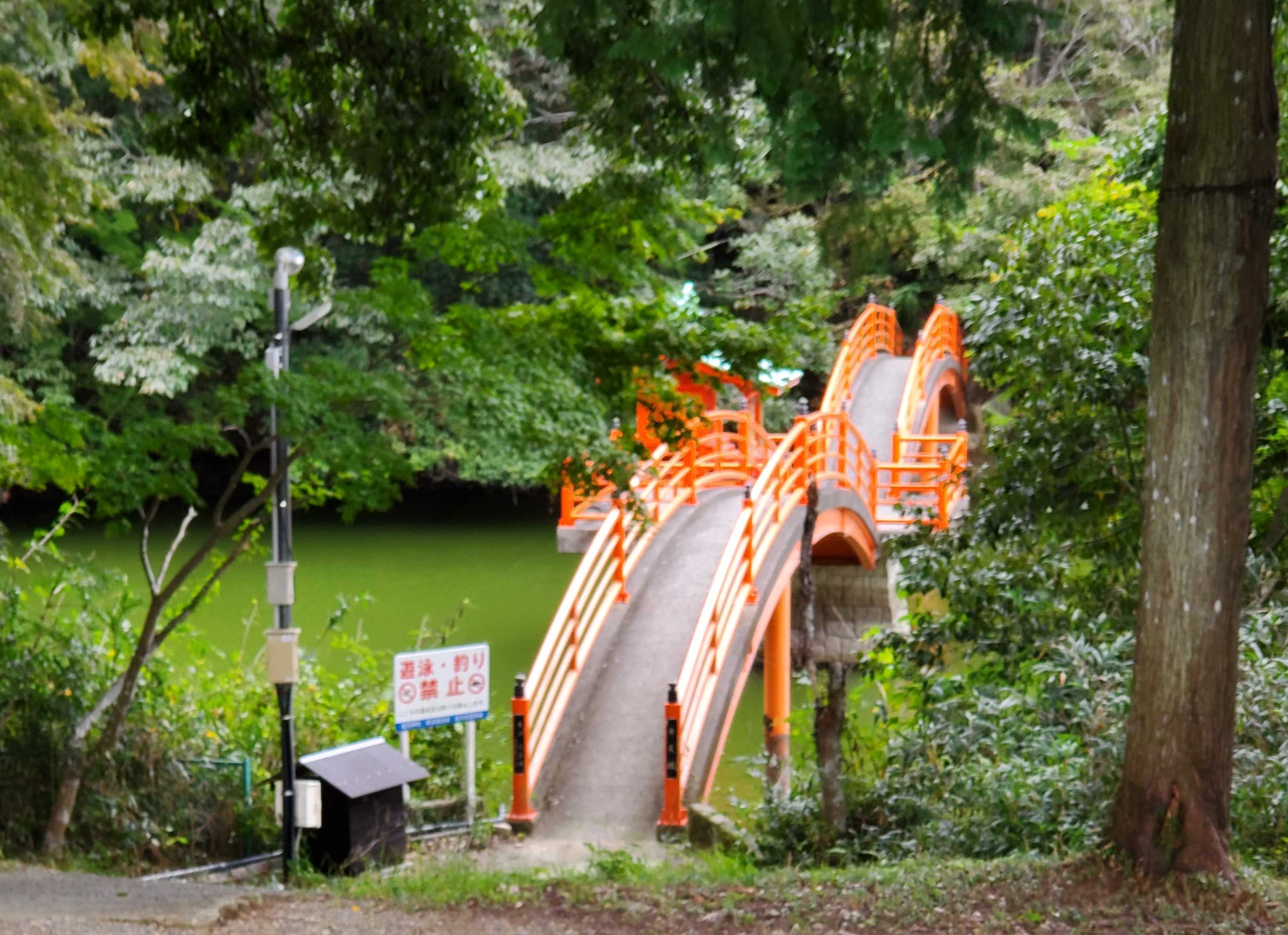 一の鳥居をくぐるとすぐに池がありこの赤い橋を渡ると弁財天が祀られている