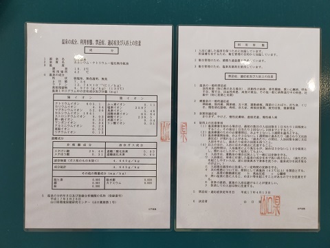 脱衣所には温泉の成分表が