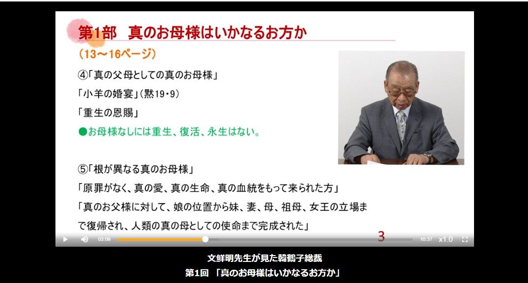 真の父母を中心として統一家全体が一つとなり、和合していくことが神様の願いです。真のお父様がお母様に対して語られたみ言を収録した韓鶴子総裁御言選集(4巻セット)の第4巻『文鮮明先生が見た韓鶴子総裁』を小山田先生が解説します。さらに、真の父母様の位相を否定する郭錠煥著『事必帰正』の問題点を指摘します。真の父母は一組しかいないのです。