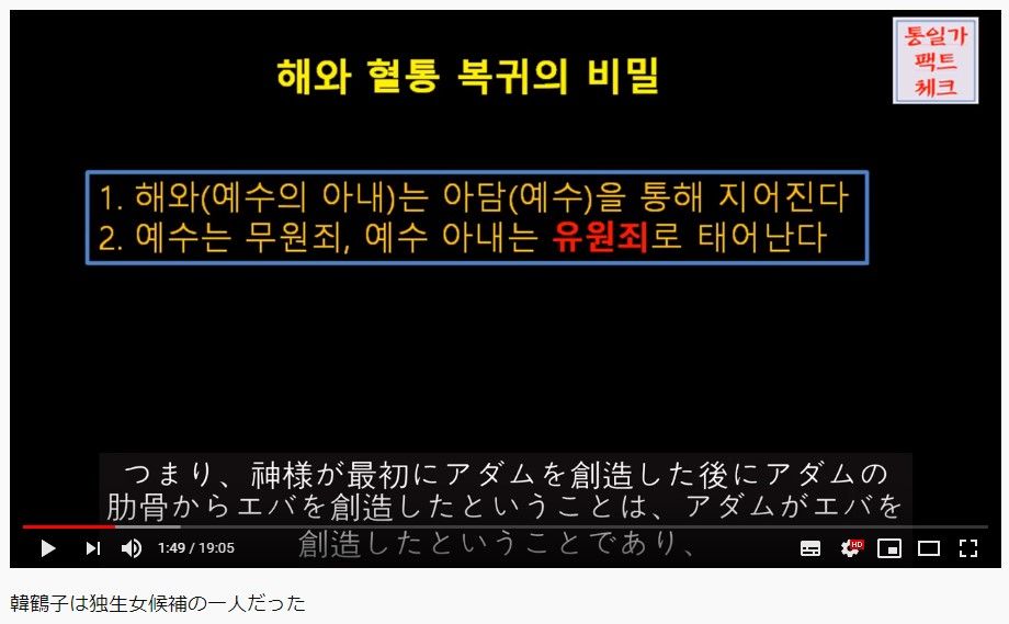 人間始祖アダム・エバについて言えば、最初にアダムを創造されアダムのあばら骨でエバを創造された。金鍾奭氏の動画「韓鶴子は独生女候補の一人だった」(以下)は既に「 UCIを支持する「有志の会」の事実上の〝敗北宣言〟-- 「真の父母様宣布文サイト」から 」で、FPAはその自己弁明にFPAが走っているということだったが、