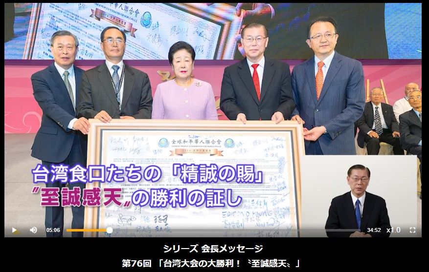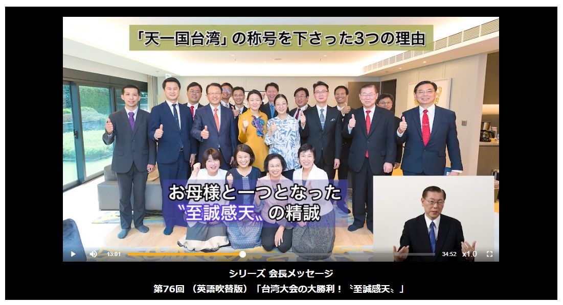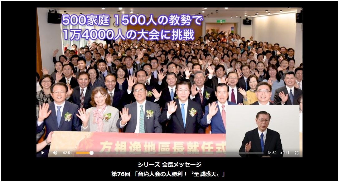 このように、台湾の教勢が500家庭1500人、その10倍の人が動員されたということは正に奇跡ともいえるものだった。そのキーワードこそが『至誠感天』というのが徳野会長のメッセージであったし、