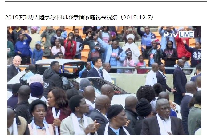 ​PeaceTVの生中継『[日本語]2019 アフリカ大陸サミットおよび孝情家庭祝福祝祭』は以下のYouTubeで再度見ることが出来る。実際の映像が入ったのは”1:12:00”(​ こちら ​)からだった。
