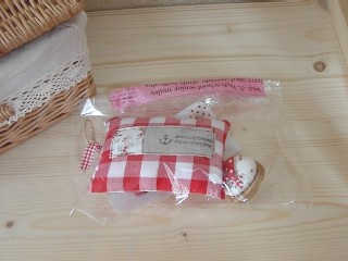 楽天のお友達ローズ*さんのショップでピンクッションのお買い物をしました。2度目のお買い物ですが、とってもセンスがあって丁寧な作りで感激です。うっとり・・・もうすぐC&Sさんで予約したソーイングボックスが届くのでそれに入れて使いたいと思います。とっても楽しくハンドメイド出来そうです。そしてラッピング素敵でしょう。タグもすごくかわいい~。とっても刺激を受けて小学校のバザー用に作ってみました。子供たちの裁縫箱に入るように正方形にしました。ちょっと奮発して、レースやC&Sさんのタグを付けてラッピングもしてみました。売れるかな~ちょっと心配ですが・・・。ピンクッション作りはすぐに出来てとっても楽しいです。もっとたくさん作りたくなってきました。ローズ*さんほんとに素敵なお買い物ができました。素敵なハンドメイドとっても参考になりました。ありがとう♪