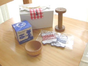偶然にもお誕生日にkie*さんからのカウプレの贈り物が届きました。私はkie*さんのソーイングにとても憧れています。そんなkie*さんカウプレが当選した時はとてもうれしかったです。カウプレの丸底バックは今人気の花柄でキルト芯が使われています。持ち手は皮なので上品です。底が丸底なのでたっぷり入ります。ほんとに素敵でうっとりです。そしてかわいいboxには、紅茶、糸、糸巻きなどのセンスの良い雑貨が入ってました。kie*さん素敵な贈り物ありがとうございます。日記にアップすることを恥ずかしとおっしゃっていたのですが、とても素敵なのでご紹介しました。うれしいお誕生日の贈り物となりました。前回の日記では、コメントでおめでとう!のメッセージとてもうれしかったです。こんなにたくさんな方から言われたのは初めてです。本当にうれしいです。遅れていますが、お返事必ずしますね。カウプレ、交換会うれしいことが続いています♪