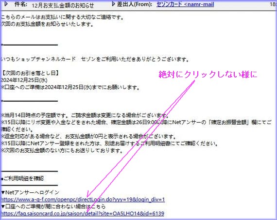 本日届いた迷惑メール、絶対にアクセスやクリックは、しない様にしましょう。