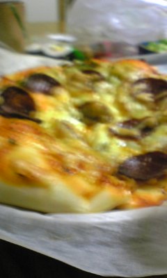 粉だけいれて発酵までして後は色々乗せてピザを作った