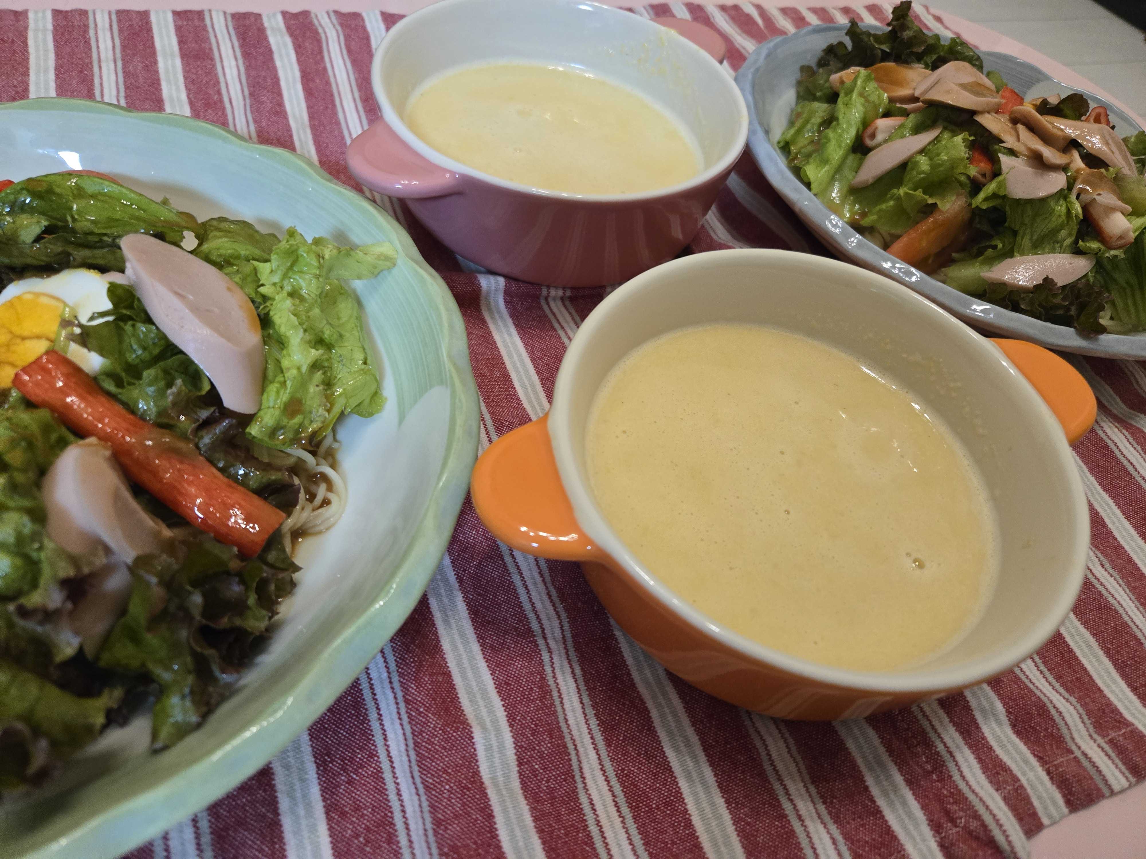 昨日レタスのポタージュ作ったらコーンポタージュが良いと誰かさんが言うので今日はコーンポタージュ。コーン缶一つ、玉ねぎ半量、小麦粉少し、バター適当、水、牛乳、コンソメ。お鍋でグツグツしてミキサーかけて濾しても良いけど食物繊維もったいないので濾さずに食べた。口当たりより健康重視😆まあこれは王道で普通に美味しい。サラダ冷麺とコーンポタージュシャキッとコーン(190g×3コ入)【はごろも】[缶詰]
