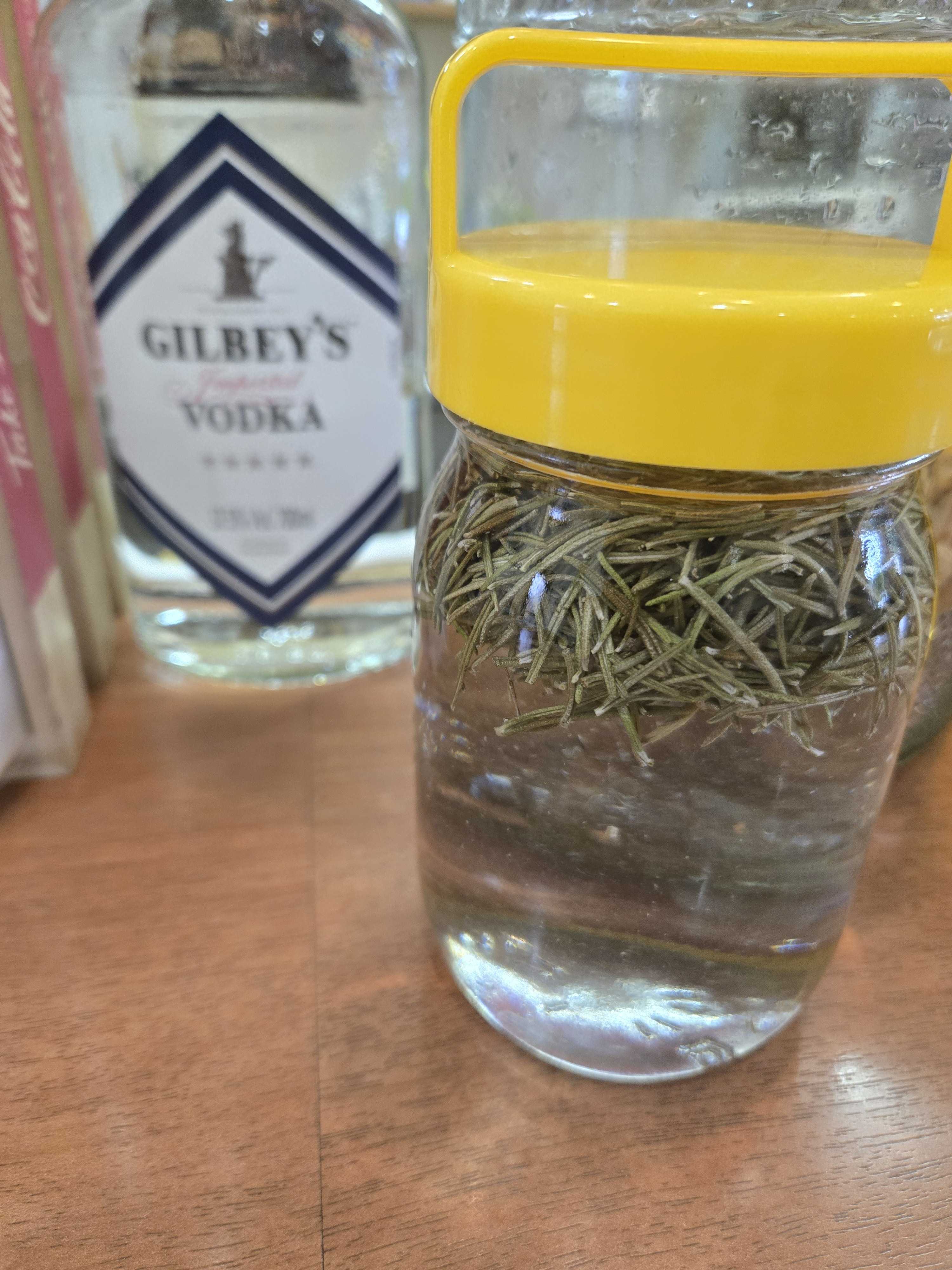 ウォッカに漬けてたローズマリーチンキ。色が出てきた~。あともう少しおきます。ウヰルキンソン ウオッカ(1800ml)[アサヒビール/ウォッカ/ウィルキンソン]