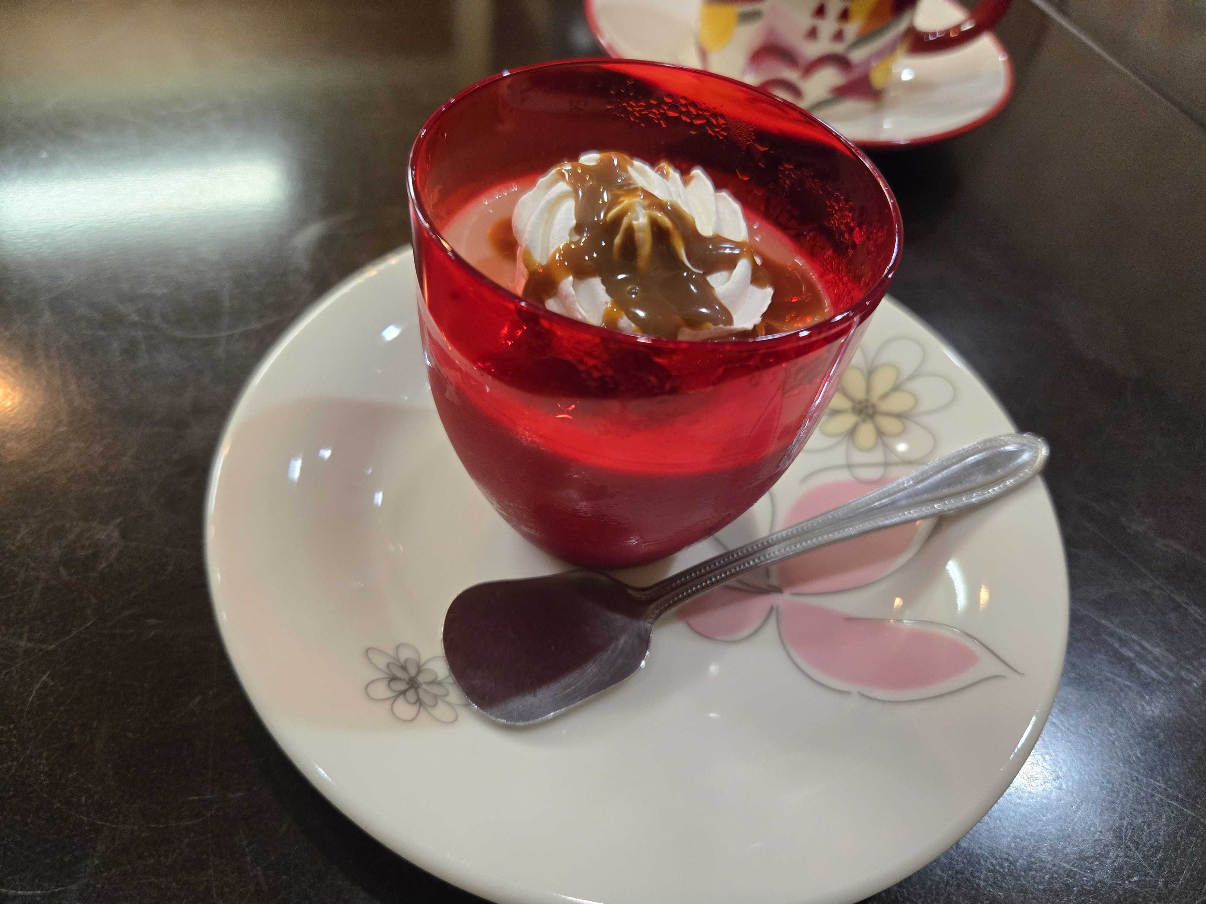 ふるふるで口の中でとろけるロイヤルミルクティープリンです🎵ペリカンの家の新しいデザートです-上にかかっているキャラメルソースとよく合います❗
