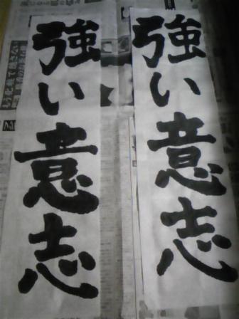 ようやく冬休みが終わる。。。宿題は?ワーク5冊・・・何とか終わった。社会のレポート・・・コレも何とか。百人一首の暗記・・・まだ途中だけど、DSしながら頑張ってる。書初め・・・あちゃ~。。。昼休み。慌てて準備させた。姫は習字をさせていないので、いまだに筆の持ち方からできない。姿勢、筆の持ち方、始筆、終筆、わずかな時間しかないがちょっと力を入れて教えてみた。何度も筆の運びなど練習させていたら昼休みが終わってしまった。。。。XXXXXXX夕方、晩ご飯を早めに切り上げ、塾へ行く時間ぎりぎりまで頑張って書き上げたのが、コレ↓↓↓いわゆる「きれいな字」ではないけど、始筆も終筆のしっかりできてるし、形もそこそこ。何しろ、独特の味があって、母は気に入ってる。旦那に言わせれば「『強』が大きすぎてはみ出てるやん」と言うことだが、意志の強さが強調されてていいやん、と思うのは母のエゴだろうか?XXXXXXX塾から帰って違う半紙に何度も名前の練習をして、この2枚に学年と名前を書き入れた。さすがに最後の最後は集中力が途切れてしまったのか、思うように筆が動いてなかったが、何とか2枚仕上げることができた。残念なことに、やや上手に見える右側の作品の名前がいまいちで、逆に補欠(!)だった左側の作品の名前が上手に書けた。どちらを提出するかは、本人に任せよう。。。。ともかく、久しぶりに習字をした母は、自分の腕があまり落ちてないことに感動。時間があったらじっくりやりたいなぁ。。。などと、暢気なことを思ってしまった。姫も少しは、筆の扱いに慣れてくれたかなぁ、といまさらながら。(苦笑)