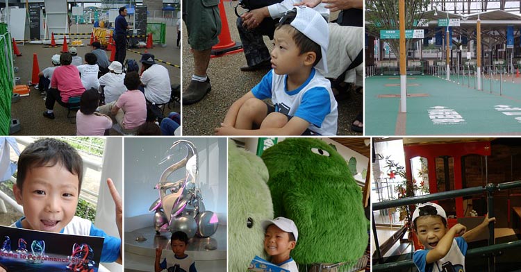 ◆本文中のリンク先はQT動画(800KB~2MB)です。当日はEXPOドームでの宝塚OBのショーがあり、朝早くに並んでいた方の2/3はショー目当ての少し年齢の高い方々でした。皆さん、何度も通っているようで、親切に朝一の回り方を教えて頂いたので日立の当日予約とトヨタへ並ぶ作戦に決定し、ゲートが開くと同時にhitoと一緒にスタートダッシュ、、、 走らないでと腕を広げる警備員の脇をすり抜けて、11:00~11:30の日立の予約を取り、スグにトヨタの列へ走って1回目のショーに間に合った。(私の役目は終了って感じ)北ゲート手前広場での列(AM6:10、私達は20番目) hitoもおとなしく待ってました 誰もいないゲート前、8時頃には人で溢れた~トヨタ館へ入る前のhitoはニコニコ 記念写真 モリゾウ・キッコロのぬいぐるみ ワンダーサーカス館入口トヨタのショーでは、hitoはおとなしく、また、一緒に歌い、手拍子をして楽しみました。ワンダーサーカス電力館は電車に乗って楽しむアトラクションなのでhitoはご機嫌で、さらに、噴水広場でも楽しんでました。日立館では、借りた機械を目印に当てて説明を見るけど、hitoは目印に当てるだけで説明は? 乗り物で見るショーは怖がってました。ワンダーサーカス館前広場で水遊び、、、 ベタベタになった~ 日立館で借りた機械を使って楽しんだJRのクイズ大会で非売品のピンバッジをGet わんぱく宝島の入口 短距離競争のスタート準備 バランス時間の測定中ブラブラと歩いていたらクイズ大会の呼び声、、、 小さい子は指名して貰いやすいようでピンバッジをGET (答えはおばさんに教えてもらった)ワンパク宝島は子供天国! 全て体験するのは無理なので、スポーツ、料理(餃子を試食)、遊び広場、長~い滑り台(2回)を楽しんだ。水の広場・風の広場・散策の森も、水着や運動着を持ってくれば1日遊べそう。時間があれば、もっと遊ばせたかったな~地球市民村の中を散策 像やキリン、シマウマ、、、作り物ですよ 滑り台を降りて階段を駆け上がる。元気だな~今度は風の広場の滑り台(6歳以上だって) 外国館で見知らぬおばさんとセッション? ベルギー館のソフトクリームは600円也その後は空いてる外国館を見て、太鼓を叩いて遊んだりしながら移動、、、そろそろお腹が空いてきたhito、、、 アイスクリーム!と連呼するので奮発してベルギー館のソフトクリームを購入したらニコニコでした。会場の東半分を歩いて移動したので足が疲れ、ゴンドラに乗りたいと言うhitoの言葉に激しく同意して暫し楽チン、、、でも、降りたところのレストランは待っている人がいっぱいなので、また北側を半周してアサヒパノラマレストランへ (もう足が痛いよ~)リトアニア館前でダンスを見るhito ゴンドラに乗って北口方面へ戻ることに アサヒパノラマレストランのカツ・オムライス1300円子供定食(880円)、豪華なので女性に良いかも 付け合わせの大根とニンジンが、、(笑) 力尽きて眠るhito、、ほとんど食べてないよ~こども定食880円はお得な気がしたな~ カレー、ハンバーグ、エビフライ、唐揚げ、フライドポテト等の盛合せで、大人も沢山食べていた。生ビールを2杯飲んだら、私はもう帰りたいモード、、、 hitoは食事のフルーツを食べただけで寝ちゃった~hitoが眠っている間は、隣に座っていた老夫婦と話をして楽しませてもらい、新しいビニール袋まで頂いたので、hitoの食事のハンバークと唐揚げ、ポテトを袋に詰め、hitoを起して予約のマンモスへ、、、(40分の昼寝では足りず、hitoボケボケ~)マンモスを見たら元気が出てきたようで、さらに歩いて、2度目のワンダーサーカス館へ入場した。(一番好きな館だったようです)寝起きで~す。センターゾーンにて オレンジマンモスの予約の列に並ぶ 2回目のワンダーサーカス、ご機嫌なhitoJRリニアの前で係りの方に写真を撮って頂いた 三菱未来館、40分が短く感じたと思ったら、hitoも楽しかったって、、、 さ~帰るぞ~リニアを見るのは空いていたので、まず中を見て、それから外で写真を撮っていると、係員が記念写真を撮ってくれました。16:40予約だったけど、16:30で入れてもらって3Dシアターを楽しんだけど、hitoは怖くてメガネを外そうとするので、私がhitoの手を押さえて外せないようにしてたら、hitoは諦めたのか我慢したのか、おとなしく見てました。(怖がり~)そろそろ19:30、ガス館、ワンダーホイール館は入場終了になっていたので、三菱未来間へ向かう。30分待ちで館内が40分、、、長いので入館を迷ったが、入ってみたら40分があっと言う間だったし、hitoも40分間楽しんでいられたから、構成が上手いのかな~外へ出たら真っ暗、、、 でもJR超伝導ラボは10分で入館できると呼んでいるのでフラフラと列に並ぶ、、、超伝導で発射する実験機や、模型のリニア(本当に超伝導で走っている)を見て楽しんだ。20:40、帰りのリニモに乗る人の波、、、 日立館の列以上でした。 何分待ったら乗れるのか、見ていて心配になりました。私達は北口から徒歩5分の民間駐車場(3000円)を