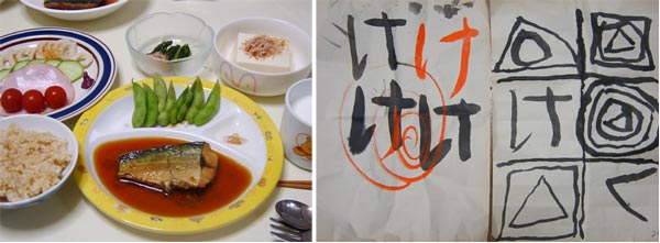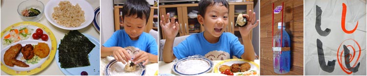 週4~5回のプールの為か、今月に入ってからのhitoは夕食の途中で眠くなり食事を残すことが多くて食べる量も減っている。で、yellow3104さんの日記をマネて、今晩はhitoにおにぎりを作らせてみたら、hitoは大喜びでおにぎりを作り、食べること食べること、、、 何と、おにぎり3個(皿のご飯を全部)を食べました。(笑)おにぎりを食べる途中でおかずを食べさせたら、久しぶりに完食でした。夕食は、手羽先、唐揚げ、コロッケ、茹で野菜のサラダ(キャベツ、ピーマン、ニンジン、トマト)、ほうれん草のおひたし、牛乳、おにぎりでした。yellow3104さんはオークションで本をたくさん出品しているので、私は時々買ってますよ。 保育園のグループ活動で作ってきた船?らしい(縦に写真を撮っちゃダメだったかな)▼ 昨日の習字は『し』でした