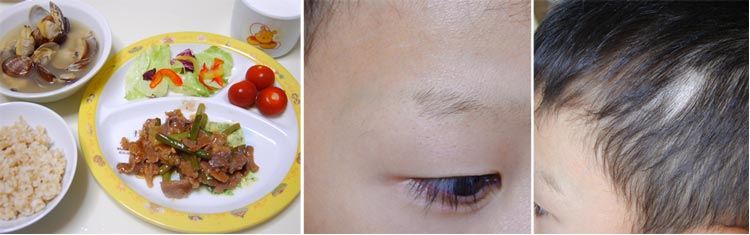 昨晩、スーパーの子供広場で、hitoは仲良しのクラスメイトと一緒に遊んでいた。相手の父親が近くで見守っていたので、私は少し離れて商品を袋に詰めながら見ていたが、相手の子がhitoを踏みつけたり、押したり、服を引っ張ったり、、、挙げ句の果てには 『泣かせてやる~』 と叫んでいる。。。(驚)相手の父親は自分の子供の乱暴を見かねて 『止めなさい』 と言うものの、子供は聞く耳を持たないようなので、私は近くへ行って父親に短く挨拶を済ませ、『hito、帰るよ』 と声を掛けてhitoを助け出した。相手の子はhitoから良く名前を聞く子で、遠足等でも一緒になる事が多かったので二人は良い関係なのだろうと思っていたので、ちょっとショック。。。家に戻ってからhitoに保育園ではどうなのかと聞くと、最初は口を噤んでいたけど、先ほど見た様子を話しながら細かく聞いて行くと、思い出して悲しくなったのか、涙がポロリ、、、小突かれたり、抓られたり、引っ張られたりする事を言葉にしたら、さらに涙が溢れました。仲良し仲間だと思っていたのに、hitoは弱くて何も言えないのかな~ 最近、知らないうちに背中にアザが出来ていたこともあるので、今回の事も含めて、保育士さんに様子を見て頂くように連絡帳でお願いしました。::::::::::::::::::::::::::::::::::::::::::::::::::::::::::::::::::::::::::::::::::::::::::::::::::::::::::::::::::::::::::::::::::::::::::::::::::::先日、私の髭剃りで眉を剃ってしまったhitoは、髭剃りを勝手に使わないと私と約束した。今朝のhitoの顔、、、 またやってくれました。(怒!)今回は右の眉と左側頭部の髪を剃り、まるでハゲのようになってます。で、先日約束した通りにお仕置きとして今日はチ○チンの癒着部分を剥いたので、hitoは痛みで大泣き、、、 もうこれで懲りて欲しいものです。癒着が無くなるのを願っているのだけど、また戻っちゃうんだろうな~::::::::::::::::::::::::::::::::::::::::::::::::::::::::::::::::::::::::::::::::::::::::::::::::::::::::::::::::::::::::::::::::::::::::::::::::::::今日の夕食は、ポケモンパン(バナナクリーム)、牛肉とニンニクの芽の炒め物、サラダ、アサリの味噌汁、ご飯、牛乳で、hitoは完食でした。