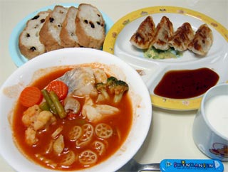 お迎えの時にhitoの指、中指の手のひらに近い部分に絆創膏が、、、昨日、初めてできた板飛び越しを今日も一生懸命に練習したようで、何度も飛び越せたとの事ですが、指の皮が直径1cm弱の円状に剥けてました。2日続けて飛び越せれば、まぐれじゃないから、もう安心だな~::::::::::::::::::::::::::::::::::::::::::::::::::::::::::::::::::::::::::::::::::::::::::::::::::::::::::::::::::::::::::::::::::::::::::夕食はご飯を炊き忘れたので、鱈入りトマトシチュー、餃子、レーズンパン、牛乳でした。hitoは板飛び越しの練習で疲れたのか、半分程度食べたら眠気でダウン、、、何とか風呂だけは入ったけど、そのまま眠りました。