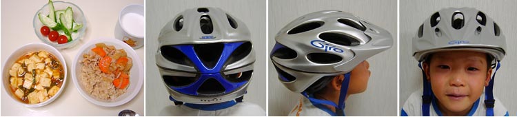 今日のhitoは大忙し!午前中は保育園からバスで移動して和太鼓の練習があり、午後はグループ活動とプール、、、午後からの雨でプールは中止になったけど、グループ活動では、厚紙でシーソーのおもちゃを作ったらしい。シーソーの上には何かを乗せることになっていて、hitoは紙でカブト虫とクワガタを作って乗せたとようです。和太鼓に引率した先生から、hitoが上手だったと褒めて頂きました。(笑)::::::::::::::::::::::::::::::::::::::::::::::::::::::::::::::::::::::::::::::::::::::::::::::::::::::::::::::::::::::::::::::::::::::::::::::::::::先日の日記に書いたイジメ?の件は、園長先生にも連絡されていたようで、今朝、hitoを送った時に、園長先生とも話をして来ました。嫌なことをされても、hitoはその場では我慢し、後で先生に伝えるようなので、その場でハッキリ意思表示をして相手に伝えることが出来るように指導したいとのことだった。もっとも、これは以前から分かっていることなので、親の責任でもあるんだよな~::::::::::::::::::::::::::::::::::::::::::::::::::::::::::::::::::::::::::::::::::::::::::::::::::::::::::::::::::::::::::::::::::::::::::::::::::::オークションで購入したヘルメットが届いたので、hitoに冠ってもらって写真撮影、、、 後ろのデザインはヘルメット名がXEN(ゼン)だから×なのかな?hitoにはバツのヘルメットだ~ 下手になりそうだね~と笑われた。(涙。。。)ここ数日のhitoは食欲がないので、夕御飯は少な目 (その分、私が増えちゃうんだよな~) 豚丼、ピーマン入り麻婆豆腐、サラダ、牛乳 最近のhitoはノロノロと食べるので、今日も1時間半以上掛かってました。