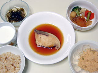 保育園に迎えに行くと、朝からの雨でホリデーは延期になったようでhitoは 『つまんなかった~』 と言いながらも、顔は笑ってました。まあ、好天になれば実施されるのだから、明日以降のお楽しみだな~保育園からの帰りは、また交通公園で自転車の練習、、、今日は5~6回の失敗の後、5連続縁石越えに成功! 徐々に上手くなってます。帰宅したら午後8時前、、、 時間がない~ってことで、 夕食は、ブリの甘煮、諸々野菜の甘煮(ブリと同じ鍋で煮て盛り分けた。手抜き?)、もずく酢、わらび餅(何故?)、ご飯、牛乳。 (hitoはわらび餅を半分残した)以前と違って、最近のhitoは酢が苦手、、、もずく酢に砂糖追加したけど、それでもブルブルって身震いしながら食べてました。(笑)