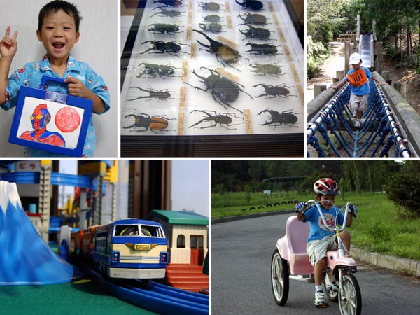 今朝起きると、hitoは昨日実家から持ち帰ったお絵描きんちょで塗り絵、、、朝食後、9時に家を出て四日市スポーツランドへ、、、 客は10人くらいでガラガラ~ ローラーコースターを4回乗り、カブト虫と昆虫標本を見てフィールドアスレチックを1周してから、次へ移動、、、午後1時頃には鉄道おもちゃ屋に着き、昼食4時迄のお客は私達だけだったので、テレビゲームやプラレールでのんびり遊ベました。その後は伊坂ダムサイクルセンターへ、、、 変わり種自転車7種類に乗って走り回り、トライアルの練習、、、 今日のhitoは絶不調で、ブツブツ自分に怒ってました。それにしても、めっちゃ暑かった~ 私は何度かメゲそうになりました。(笑)写真をクリックすると今日の遊びの一部が見られます。(QT動画、1.8MB、29秒)