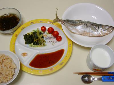 夕食のメインは鯵の蒸し焼き(盛りつけを考えろ~と言われそうだな、、、)hitoに大きな魚をまるごと出したのは初めてだから、最初は 『こんなの食べられない~』 と言っていたけど、『hitoの好きな目があるよ』 と話すと食べる気になったようで、まず、目玉を4個、、、 その後は小骨を出しながら片身分程度は食べました。それにしても、何時から目玉を食べるようになったのかな?骨が取りやすいように蒸し焼きにしたけど、普通に焼いた方が旨いような?二人ともあまりお腹が空いてなかったから、他は手抜き~
