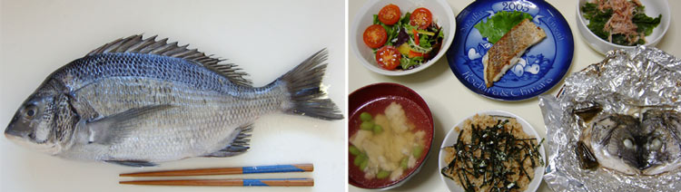 今日は店の休業日で明日は給料日なので、給与計算と振込予約、買掛金の振込予約をして仕事は終了夕方は、特売で買った黒鯛の料理、、、 と言っても、あまりの安さに思わず買ってしまっただけなので、何も分からん!取り敢えず、鱗を落として、、、 うわ~ あっちこっちに鱗が飛び散り大変だ~なんて言いながら続けていたら、痛~~~! 背びれの太い骨が親指に突き刺さった~ 当然、流血、、、(涙。。。)絆創膏で処置をして気持ちの切り換え~さあ、ヒレを落として、、、 堅い骨だなと言いながら続けていたら、痛~~~~~!ヒレを押さえていた右手の小指まで切った~~ これまた流血、、、(涙。。。 私は包丁を左手で使います)絆創膏をきつめにまいて止血、、、 3枚におろして、、、 骨の周りに身がたくさん残ってる。。。 (包丁が切れないよ~)1枚は、塩をふってコブを敷き、冷蔵庫で寝かせから焼いた、、、 塩焼き1枚は、hito好みの甘辛味に煮て、慎重に骨を取ってご飯に混ぜ込んだ、、、 鯛飯 (本当の鯛飯じゃないな~)あらは、コブでだしをとってから煮て、塩と醤油で味を整えた、、、 うしお汁? (hitoの椀は骨なしの身と豆です)頭は、目玉が好きなhitoの為にホイルに包んで焼いた、、、 包焼き (目玉とその周りしか食べないのか~)サラダと大根葉のおひたしを添えて、hitoの夕食になりました。 hitoは大根葉は苦みがあって食べなかったけど、他は完食、、、(黒鯛は天然物で390円也)食後に蒸したサツマイモまで食べ、牛乳を飲んで、hitoは満腹! だわな~ (笑)::::::::::::::::::::::::::::::::::::::::::::::::::::::::::::::::::::::::::::::::::::::::::::::::::::::::::::::::::::::::::::::::::::::::::昨日、hitoが保育園から持ち帰った買物ゲームで買った物、、、フライドポテト、パカパカ?(足を乗せて歩く)、焼き芋、アイスクリーム、エプロン、財布、残金100円でした。::::::::::::::::::::::::::::::::::::::::::::::::::::::::::::::::::::::::::::::::::::::::::::::::::::::::::::::::::::::::::::::::::::::::::今日は明け方の雨で園庭が使えず、屋内でのゲーム大会になったそうで、チョット残念だったって、、、午後は始めての老人保健施設を訪問し、帰宅後には演技の内容や施設の中の様子を話してくれました。明日は和太鼓の練習と、いつもの老人施設を訪問があります。 hitoは忙しいな~
