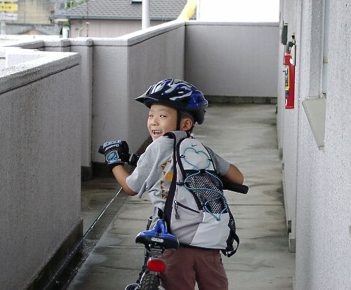 台風だ~~~! と言いながらテレビを見ていたのに、窓の外を見たら晴れ間が、、、暫く雨で乗れなかったので、ランチを兼ねて自転車でお出掛け~行き先はヤダサイクル (毎度同じ、、、笑)hitoは嬉しそうに昨日買ったディパックを掛けてました。 (幅は良いけどチョッと長いね)パンク修理の道具を全部hitoに持ってもらったので、私は手ブラで楽ちん (笑)流し目と、生えかけの前歯が怖いぞ~さて、次は車で鉄道おもちゃ屋へ行って来ま~す。 (これも毎度同じだな~ 笑)