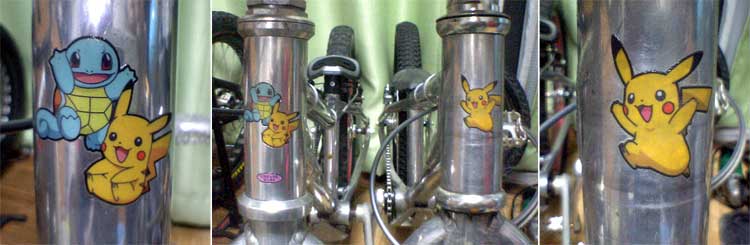 3日目天気:晴れ宿題:計算ドリル3枚、漢字ドリル4ページ遊び:DSを30分、サッカー?特記:朝は宿題をしてDSで遊び、私が用事で外出した11~14時はテレビを見て過ごし、 午後はサッカーボールを持って一人で校庭へ行き、店へ戻ってテレビを見て、帰宅後は夕寝(笑)生活:昨日は遅くまで起きていたのに今朝は6時頃に起床。 やはり寝不足だったのか夕方から21時まで眠り、夕食を食べて23時半に眠った。自転車:練習なし hitoに 『明日、自転車 (センカ) の新しい持ち主が取りに来るよ~』 と話したら、一番お気に入りのシールを出して 『このシールを貼ってあげて~』 と言うので、トップチューブにペタッ! (ポケモンパンのおまけ)hitoからのコメント、、、 自転車とシールを大切にしてね~ (hitoへ、、、 自分の自転車を大切にせんか~!)hitoとセルベッサ、Ryu君とセンカ、、、 ポケモンのように元気に走り回って欲しいな~(笑)左:センカ、 右:セルベッサ明日来られるのは楽天で知り合って、以前、自転車のリムを頂いた方で、私もお会いするのは初めてなので楽しみです。