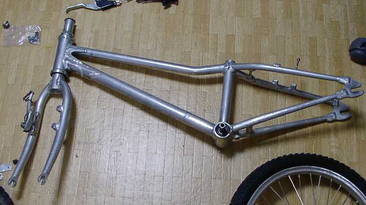 去年、中古で購入し、ヤダサイクルに依頼して専門業者でクラックを溶接したセンカの18インチフレームですが、既に身長は125cmになったhitoは無理なく20インチに乗れる為、フレームの状態で放ってあるので、改造して20インチのトライアル車として組み上げてみます。 (18インチのトライアルタイヤが入手できないので)18インチする際に20インチで使っていたハブを流用した為、今回は20インチでリム組みをやり直さないと、、、18インチのマグラ台座から20インチ用Vブレーキへの変換台座をへのを自作しなきゃならないし、ブレーキ、チェーン、シート、クランク、フリー、、、 とにかく探さなきゃ~ (使えるのが有るのかな?)