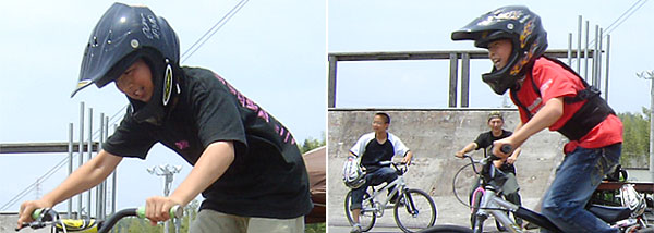 日曜日のGONZOのレースは中止!でも、楽しい催し 【プレ・たこやきカップ?】 があり、お好み焼き、たこ焼き、おにぎり・・・をご馳走になりました。 (皆様、お世話になりました) 料理が出来るまでの子供たちは? 突然企画【クイコミカップ】の練習自転車に乗るのが嬉しくて仕方ないのか? 笑顔で走る子 (子供の笑顔って、いいわ~ 笑)ゲシる時に必ず目を閉じる子 (笑ってるし、、、) ロールしてる間は舌を出してる子 (舌噛むぞ~)微笑む子 (楽しそ~う) バンクで漕ぐhito (ノロノロ~)飛んで、攻めるジンバブエ代表、、、 攻め過ぎた時の動画は封印~~~ (笑)クイコミカップの優勝者と準優勝者の走りは、下の写真をクリックすると見られます。クイコミカップ終了後は午後2時から7時半までコースを走り、 帰り間際には、こちらの子に一緒に走ってもらって練習終了! (ありがとうございました~)