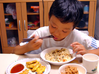 最近のhitoは手伝をして食事を作りたいというので、今日はリクエストに答えて豚肉に卵をつけるのを手伝ってもらった。で、出来上がった豚肉のピカタ、、、 美味しゅうございました~ (笑)海草と野菜たっぷりの炊き込みご飯の大盛に苦労してたhito、、、無理に止めろとは言わないけど、豆腐に納豆をのせるのって変だぞ~ (笑)味噌汁作るのサボってゴメンな~店が終わって帰宅したのが午後8時hitoに手伝ってもらったので、予定通りに作るのに時間が掛かって夕食を始めたのが午後9時半、、、(涙)手伝いは、父さんが休みの木曜日か日曜日にしようね。