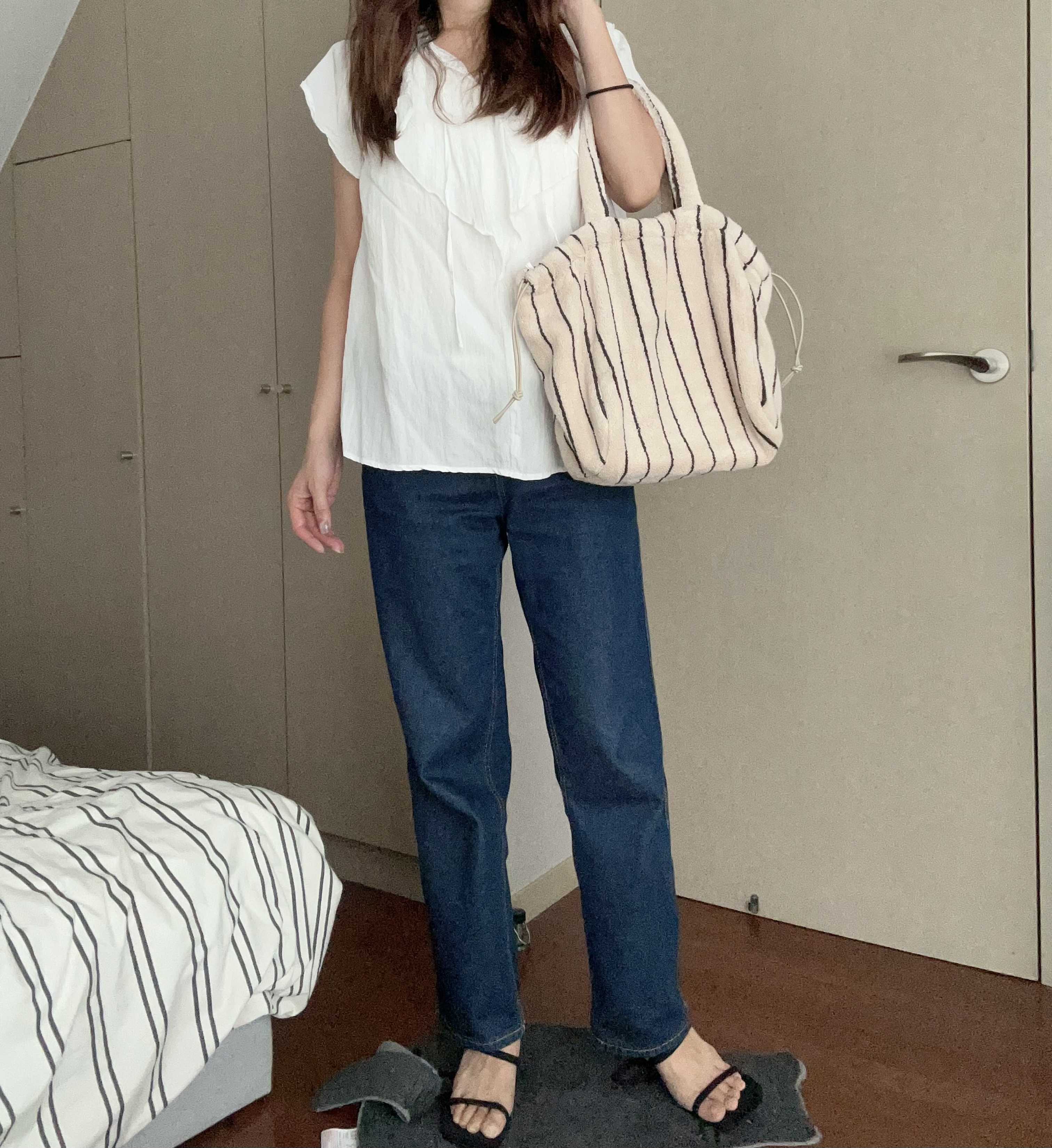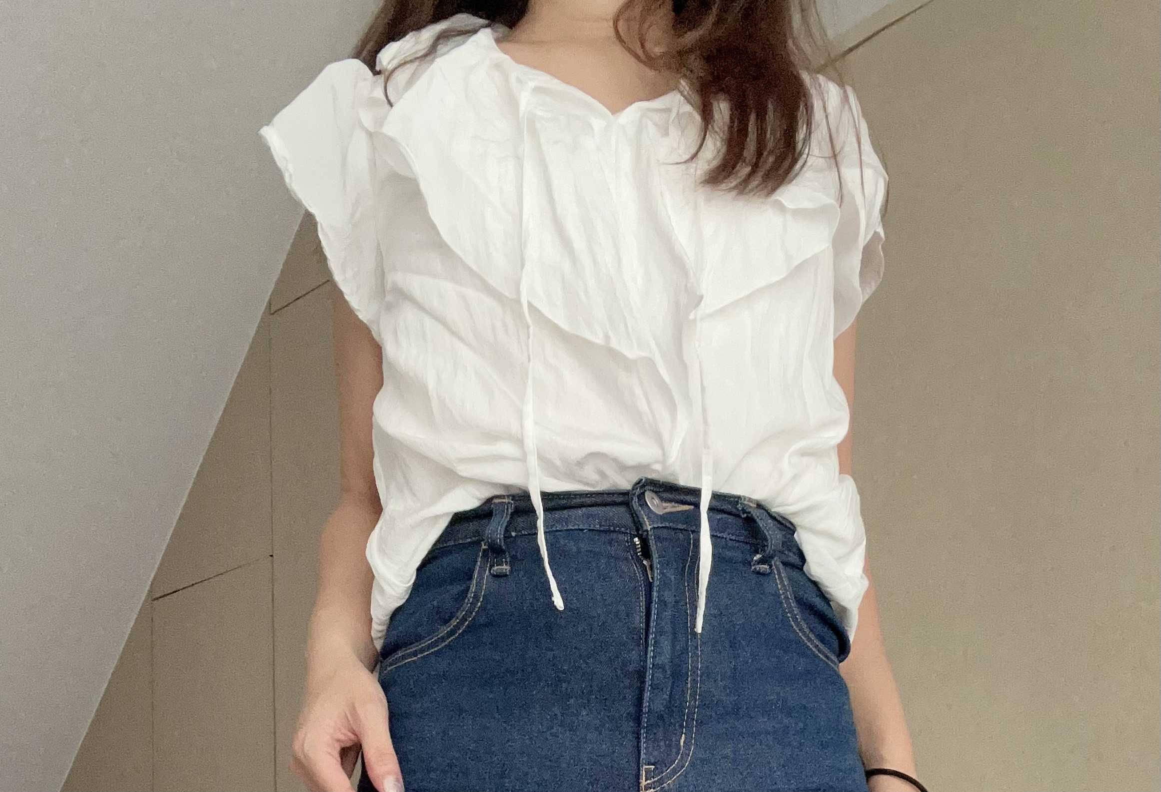 白のトップスはリーズナブルなB.C STOCKさんのものです。