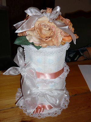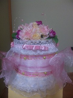 先日も作品をUPさせて頂いた講師養成講座を受講されたMさま どうやら「おむつケーキ」にハマっていらっしゃるようです(笑) ホントに!これってハマるんです キット夜なべ作業で寝不足&目の下にクマを作っていらっしゃる事でしょう(笑) 前回の作品は男の子用 今回は女の子用でブリブリピンク~ピンク星人の私の影響かしら?(笑) Mさま♪作品画像ありがとう~