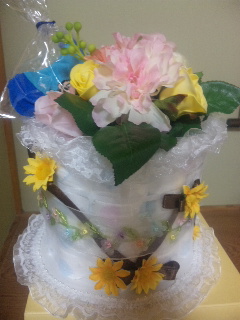 やっぱり人気のある「おむつケーキ」 「今度お友達のお祝いに作って~」とイベント中も何人かの方からお声かけ頂きました。 嬉しいですね!ネットシュップを開いていないので受注オーダーORブログでアップした作品で承っております。 出産祝いをお探しの方は画面左側の「お問い合わせフォーム」よりお気軽にお問い合わせ下さいませ。