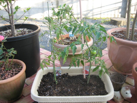 今日は、久々に”やすみ~”って感じのお休みでした。朝はちょっと遅目の9時起き。お泊まりのラブの散歩と食事やりとケージの掃除をしたら、のんびりと朝食。お買い物に出かけて、帰った来たら莉玖とゴロゴロ。昼ご飯食べて、連ドラを見て、今度はデッキでステ吉とゴロゴロ。ネットショッピングで、ひたすら”カゴバッグ”を探し回って、ブログ巡り。夕方になったら、庭のトマトが思った以上に育ちが良く、鉢が小さすぎるので、大きめのプランターに植え替え。苗は一つだけだったんだけど、寂しいから、もう一つ植えました。黒いトマトがなるんだそうで、早く食べ比べしたいな~。そして夕方のお散歩と食事をやり終えたら、お庭でぼ~っとしたり写真撮ったり。で、ブログに日記書き。我が家は、母が薔薇好きなので、薔薇ばっかり植えてあって、今、次々と咲いてます。さて、早めにお風呂入って、焼酎片手に映画でも見ようかな~。途中、お客さんが来て、爪切りした。300円なんだけど、500円もらった。まあ、爪切りくらいなら良いか~。