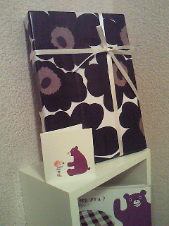 唐突ですが・・・前回の日記に「元気がない」等とほざいて ゴメンなさい m(_ _)m凹なわたしに、あたたかいコメントを入れて下さって・・・本当にありがとうございました!!なんでこんなに倦怠感を抱くのか・・・特に理由も見当たらず??いや、逆にしょーもないことが理由なのでは??と思い始めました (@゜▽゜@)ア、ソッチカということで、考えた末出た結果が。。。1 パパが実家から大量の私物を持って来て(というか、パパの荷物が邪魔で追い出された。) わたしが時間を費やして出来たスペースにドンっと置かれた ★★★2 携帯カメラの画質がイマイチ ★★3 痩せない ★・・・おそらく、この辺りの理由かと (;^_^A ホンマスイマセン3は、そりゃ努力もせずにやせる訳がない!ということで納得。2は、この際新しい携帯を買っちゃう!?っていうことで(爆)1・・・← 実はコレが大きな要因やったと思うんですよね~。。。パパは捨てない派(かといって整理もしない。怒。)なので。で・も・・・ 荷物のことで考え込んでいるわたしを見て、パパが動いてくれたんです!!荷物の半分を捨ててくれました~!!パパにとっては 快挙 です!!!「これからはママが凹らないように、パパは捨てるようにする!だって しんどいもん 。」この際末尾の言葉はガン無視で♪ めちゃくちゃ嬉しかったですぅ~~~(*≧m≦*)・・・いや、ほんまに。ごめんなさい!お気遣い頂いて申し訳なく思っています (>_<) そ・れ・で・・・ (この流れの中で、、、恐縮です。) 実は!先日ブログ友達の 陽菜さん から 贈り物を頂いちゃいましたっ! 前回ご協力頂いたフレンチコームの お返しだそうです(汗)モウシワケナイ。 マリメッコ柄のお箱~ (*´∀`*)オサレー メッセージカードも添えて下さいました♪ しかも、そのクマさんは・・・ わたしのお気に入り君~! ※ 下に写っている子がうちの子です。 とっても心温まるメッセージを 頂戴し、感激ですっっ (≧ω≦)中身は・・・こちら~ (σ ・∀・)σ地元の名作お菓子&地域限定のお菓子てんこ盛りです(嬉)久しぶりに和菓子を食べました♪渋~いお茶によく合います (●′ω`●) 六時屋タルトはほんのり柚子風味のあんこが巻かれていました~☆他のお菓子も程よい甘さ。大変おいしゅうございました。ありがとうございます!! 陽菜さんへ。 実は・・・ 同じくローランオリビエで、 黒のフレンチコームもあります(爆) こちらはメンテナンスに 出さず仕舞いで・・・ ※ぶっちゃけメンテ代が・・・ 花びらにある極小の飾りが 取れている箇所有りです (*_*) 陽菜さんにはローランオリビエのコーム とても気に入って頂いたようですので、 もしこのままでも宜しければ、是非っ (≧∀<**) もちろん♪お断りも承ります~