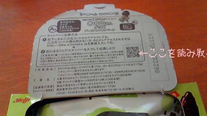むか~し食べた記憶で、おいしかったような気がしたのでひっさしぶりに「 たけのこの里 」を買ってみました(o‘∀‘o)パパが「うちの家にはお菓子がない。」と言ったから買ってきたのに、、、「ダイエットするからいらない。」と言われ Σ( ̄□ ̄;)しゃーなしでパクパク食べてたんですけど・・・ふと、「 きの山さんグッズプレゼントキャンペーン 」をしていることに気付きました。きの山さんはともかく 「B賞:図書カード500円×2」 ならいっか~と思い携帯のバーコードリーダーでさくっと読み取って、シリアルナンバーを入力 (σ・∀・)σ ぽち すると・・・「 当選しました。 」という画面が!!(続いて配送先入力画面に→)あまりのあっけなさに、「 ほんまに当選したのか? 」って感じでした ( ̄ェ ̄)