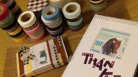 昨夜、2時間半もかけて 父の日贈呈アルバム を仕上げました~ (*´∀`*)アタシガンバッタ 画像右下の物がそうなんですけど・・・白いアルバムにマスキングテープを貼りまくりまして、 変顔(シーサーのマネをしています~)をしているパパを表紙にしました。その日、遊びに行かせていたパパに「こんな感じでできたよん。」と言ったら、、、「変な顔している写真は入れちゃダメでしょ!」と言われました ( ̄~ ̄;)ヤッパダメ?パパ的には、うちの両親にアホキャラはタブーらしい★でも、もう作っちゃったしな~・・・と思い、「フツーの(顔をした)パパの写真なんてあったっけ??あっても2・3枚じゃアルバム作れないんだもん。。。」と言ったら、スルーしてくれました!!(爆)わたしの労力も買ってくれたとは思いますが・・・ぶっちゃけ、「 パパの変顔特集 」になってます。。。(〃▽〃)バレタラマズイナ ↑ ↑ ↑ パパの荷物から発見したプリクラ。 いくら10代の頃とはいえ、、、 チャラ男に見える・・・ (@゜▽゜@) この写真より変顔の方が好印象~ わたしのマストアイテム = マスキングテープ です d(。ゝω・´) 色味・柄ともに豊富で、幅も数種類あります。 しかもお値段がお手頃ですの。 素材は和紙が一般的ですが、 最近はコットン素材の物も出てるんです♪マスキングテープだと綺麗に剥がせるので、何度やり直してもへっちゃらです !!ラッピングをするのに最適ですよ~(σ ・∀・)σ透明なビニ袋に入れて、ギフトカードを活かしてデコレートしていくと、オリジナルのラッピングが楽しめますよ (☆≧∀゚)