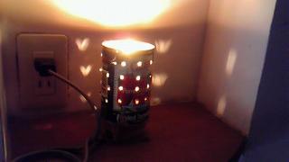 秋ですね~ (●′ω`●) ランチに行った折、ふと目に付いた照明です。。。空き缶に穴をいくつも開けて、中に電球を入れた簡易なもの。穴からこぼれる光が、 ハート の形になっています (*´∀`*)
