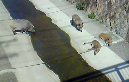 今日はマウスがこわれたので、しぶしぶマウスを買いに出ると・・・・・・川でひなたぼっこをしている「 いのしし親子 」に遭遇しました。ま、神戸でいのししは珍しくないんですけどね。 。 。一応、写メ撮ってみました (o‘∀‘o)