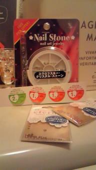 わたしの友達で一児の母をしている子がいるんですがその子もめっちゃ「 雑貨好き 」 ( ^ー^)人(^ー^ )でも、まだ子供が小さいので外に遊びに行けないみたいでしかも今住んでいるところは、雑貨屋さんが少ないらしいのです。。。ということで、、、勝手に雑貨をセレクトして送っちゃいました (;^_^Aチェック柄のマスキングテープやら、ナチュラル系のカフェカーテンやら・・・木のおもちゃで、リスの背中にキノコをバランスよく積みましょう的なものやら雑貨屋さんがお店で扱っている雑貨を載せた来年のカレンダーやら・・・ま、 自己満足 なんですけど(笑)でも!わざわざお返しのプレゼントが贈られて来たんです (>_<)スワロフスキーのラインストーン(アクリルストーンとは輝きが違う!)と、ローソンのリラックマシール5点分!!(わたしが集めていると言ったので ★ ) 早速、ラインストーンは使わせてもらったんですが(右図参照♪)残念ながら・・・リラックマのキャンペーンは今日まで (;_;)2つGETしたの言い忘れてたなぁ。。。せっかく送ってくれたのに、、、ほんまにごめんね!!