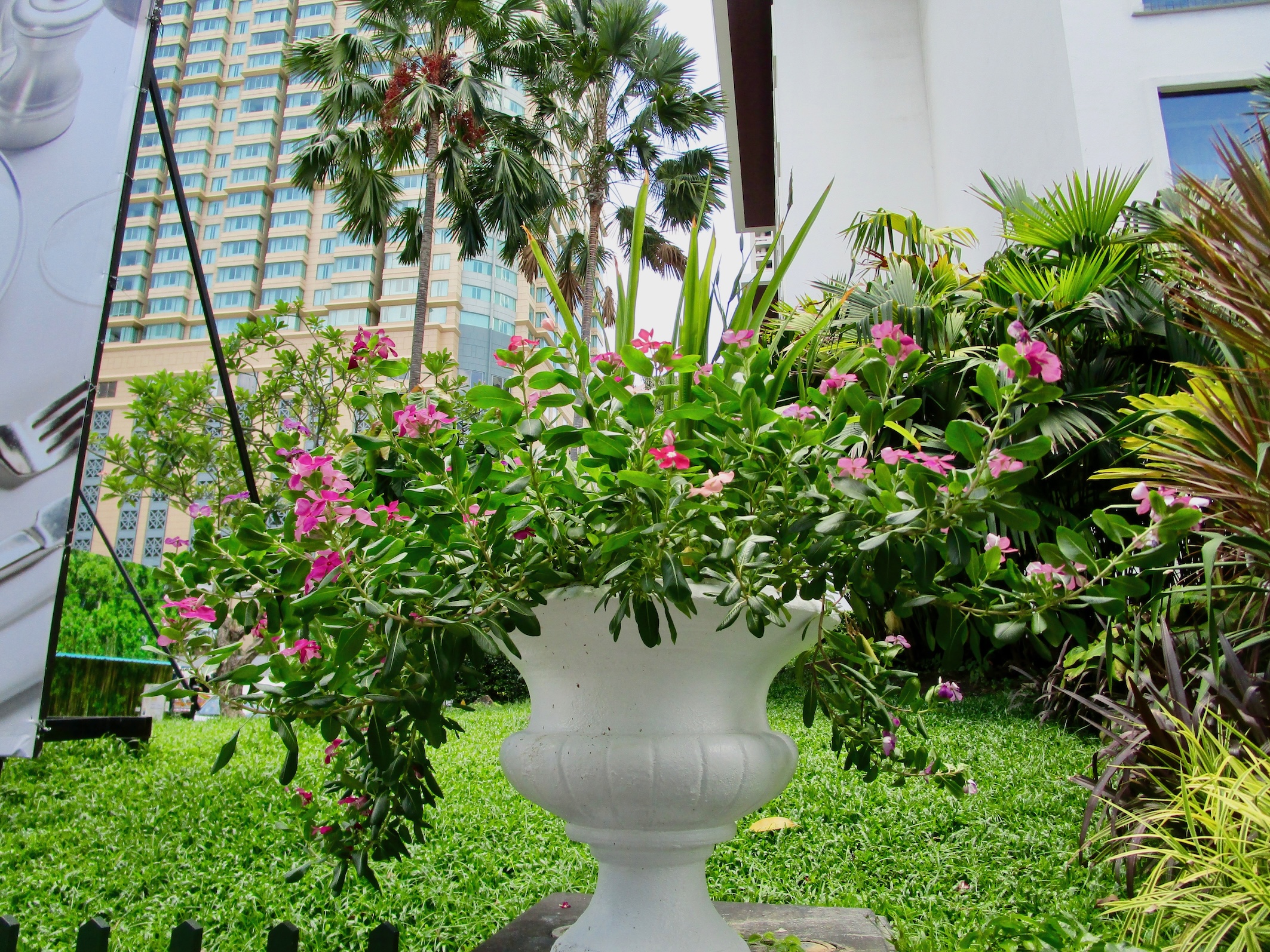 ラチャダムリ通りに沿った前庭の植え込みが美しい~