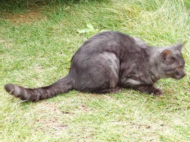 某病院近くのサビ猫(まだ中猫、耳カット無の玉つきでした。)