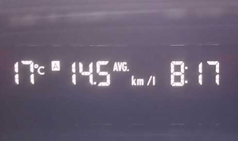 自宅出発時にGH3インプレッサの燃費計をリセットして、福山市の住居に到着時の表示は14.5km/Lです。