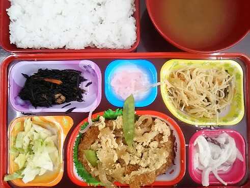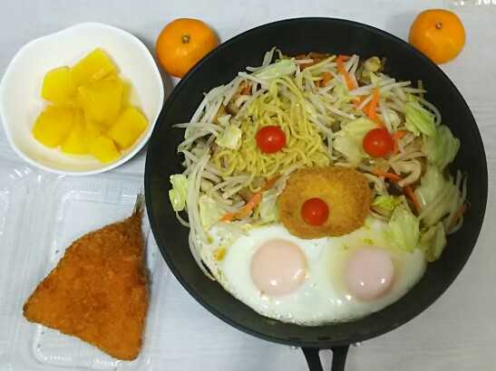 角蒲鉾のがんす、ミニトマト、めだまやきを添えました。