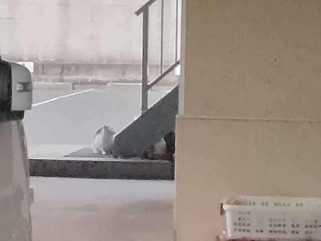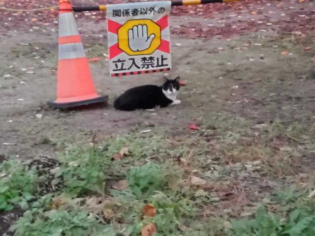 更に、住居の賃貸マンション前の公園で黒白猫です。