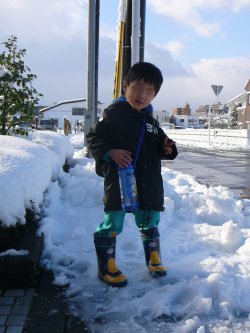 ママが同期とおしゃべりを楽しんだ二日間。家ではパパが一人子供達と戦っていた。金曜日に一冊の絵本がなくなり見つからなかったため、「明日一日かけて家中を探しーや!見つからんかったらこれから一切ポケモンみせへんで!」と脅しを入れておいた。それを探すことから始まったのだけど、子供達の引き出し等を全部探させたが見当たらず、前日に探した本棚を再度パパの指示で探したらしい。「全部出せ!」と言って本棚の本を一旦全部取り出させると・・・・。あら、不思議。一番奥に壁にへばりつくようにして埋もれていたらしい。ダレがそんな面倒な入れ方をしたんだ?ソレが終わると夕食の買出し。土曜日の夕食はパパお得意のカレー♪ママもいないというのにやたらめったら大量に作り「作りすぎたか?」と不安に思ったものの見事に完売。 そして二日目。朝から子供達に勉強をさせて答えあわせで神経をすり減らしたそうな。そして午後。ママは金曜日に幼稚園からのプリントで「お子様の『牛の絵』が大変優秀だったため○○美術館に展示しております。」というお知らせをもらっていた。でも騙されちゃいけない。これは本当にたいぶーの絵が優秀だというわけではなく、幼稚園で適当に先生が選んでいるだけで程よく順番でまわってくるものなのだ。兄ちゃんもそうだった。それにわざわざ見に行っても幼稚園で一度見たやつだったりして見ごたえがないことも多い。最近人を描かせるとやっと耳と髪の毛がつくようになったたいぶーが上手なわけも無い。そんなもんで、そのプリントをもらってママが「けっ、ダレが見に行くかいな」と一言吐いてすぐにゴミ箱へポイと捨てたんだけど、日曜日にパパがゴミ箱に捨てられたその紙を見つけてわざわざ子供を連れてたいぶーの絵を見に行ったというのだ。それがこちら。 たいぶー、牛はお馬さんじゃないんだよ。何で背中に人が乗ってんの。まるで欽ちゃんの仮装大賞に出てきそうな不自然な牛や。そして絵を見るだけだとつまらないので外に出てしばらく雪遊び。 そのまま買出しをして夕飯のたこ焼き作り。 君たち、楽しそうだねぇ・・ それなりに美味しかったらしいが、なんか足りない・・・と感じつつ半分くらい進んでからキャベツやネギを散らしてないことに気づいたらしい。キャベツもネギもなしって・・・野菜入ってへんってことやんか。ママに一度も怒られることなく過ごした楽しい楽しい二日間。よほど楽しかったのだろう。寝るときにショー兄が普段は決して気にしたこともない玄関の鍵を気にしだした。ショー兄:「玄関の鍵、かけた?」パパ:「かけないよ。もうすぐママが帰ってくるんだから。」そう諭したらしいのだけど・・・。しばらくしてパパがママを迎えに行こうとして玄関を出るときには鍵どころかご丁寧にチェーンまでして万全の「ママ拒否」態勢がしかれていたそうな。帰ってくんなっちゅーことやね。