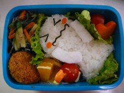先日本屋さんでキャラ弁の本が売っており、たまにはたいぶーを喜ばせてやるか~と買ってみた。面倒なことが一切嫌いなのでこの本の中でも私がやってみようと思うものは数点なんだけどとりあえず基本的にポケモンが一番喜ぶと思い、お手軽に『ソーナンス』弁当にチャレンジ!それなのにたいぶーはキャラ弁の本を見ながら「明日のお弁当は何??」と聞き、「となりのトットロ、トットーロ~ッ♪」と口ずさみながら去っていった。ごめんよ、たいぶー。トトロは面倒くさそうだったのでやらないのだよ。 本当は『ソーナンス』は全身水色のおマヌケキャラなんだけど色づけは面倒だし青色って美味しそうじゃないので白のソーナンスで♪幼稚園で食べる時にグチャグチャになってる可能性もあるのでとりあえず出来上がったやつをみせておくと、久々のキャラ弁に大喜びしてくれた。これ以上に凝ったものをしょっちゅう作る人なんか信じられないわ→なまりんさんところで、先日学校で視力検査があった。ユー兄はもう視力検査の結果なんか関係なく今月辺りにメガネを作る予定だった。先月の懇談では「黒板は字が大きいので見えていますが、(先生が)手に持った本を見せる時は字が小さくて見えないのか立ち上がって前まで来て見ています。」といわれていたのだ。今回の視力検査でも右がC(0.6~0.3)で左がD(0.3以下)だった。ちなみにショー兄もここのところ視力が落ちてるなぁと思っていたので覚悟はしていたのだけどユー兄と全く同じCとDまで落ちていた。眼科へ行くと、ショー兄は初めての視力低下だったのでしばらく通院して様子を見ることに・・。ユー兄の方は先生がいうにはユー兄自身が不自由を感じていないのなら作る必要はないとおっしゃるのだけどユー兄は何をもってして不自由と思うのかわかっていないようで「何の不自由も無い」と答える。ママとしては先生の手に持ってるものが良く見えないというのは不自由だと思うのでメガネは作ることにした。メガネ屋に行ってメガネを選ぶ段階になって初めてメガネ姿の自分に衝撃を受けたらしく、あまり選びたがらなかった。でもいつまでも買わないわけにはいかないユー兄の視力。買いました。なんか・・・・・。 メガネを掛けて中身が伴わないのに見た目はいかにも勉強してそうな顔になるのもいやだけどメガネを掛けても口がポカンと開いていかにもバカっぽそうに見えるのもイヤだ。メガネを少し掛けてると、違和感からかすぐに頭が痛くなるみたいなのでしばらくは短時間で慣らしていく・・・・という事になりそうだ。学校に持っていく前にメガネの扱い方なども慣れてもらわなくちゃいけないものね。高いんだから絶対に失くしたり~、壊したりぃ~しないように願いたいものですな。ショー兄は手袋事件で今まで貯めたお小遣いを全額没収になったけれど、メガネの場合は全額没収でも全っ然足りないんだからね!