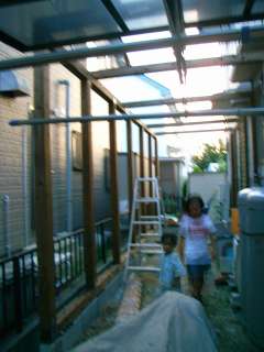本日も暑い中、ガレージ作り。本当に、暑い。。。先週は黒いズボンに黒いシャツで作業しましたが、今日は普通のジーパンに白いシャツ。だいぶ楽でしたが、やっぱり暑い。。。ふらふらになりながら、屋根部分作りました。あんまり時間がとれなかったので、作りかけで終りです・・・。エアコンの室外機をどうしようか悩みます。。。室外機ってエアコン本体より上部に持っていっていいのでしょうか??排水用のホースはエアコンより下に配置しますが、、、室外機はガレージの屋根の上に配置しようと考えています。